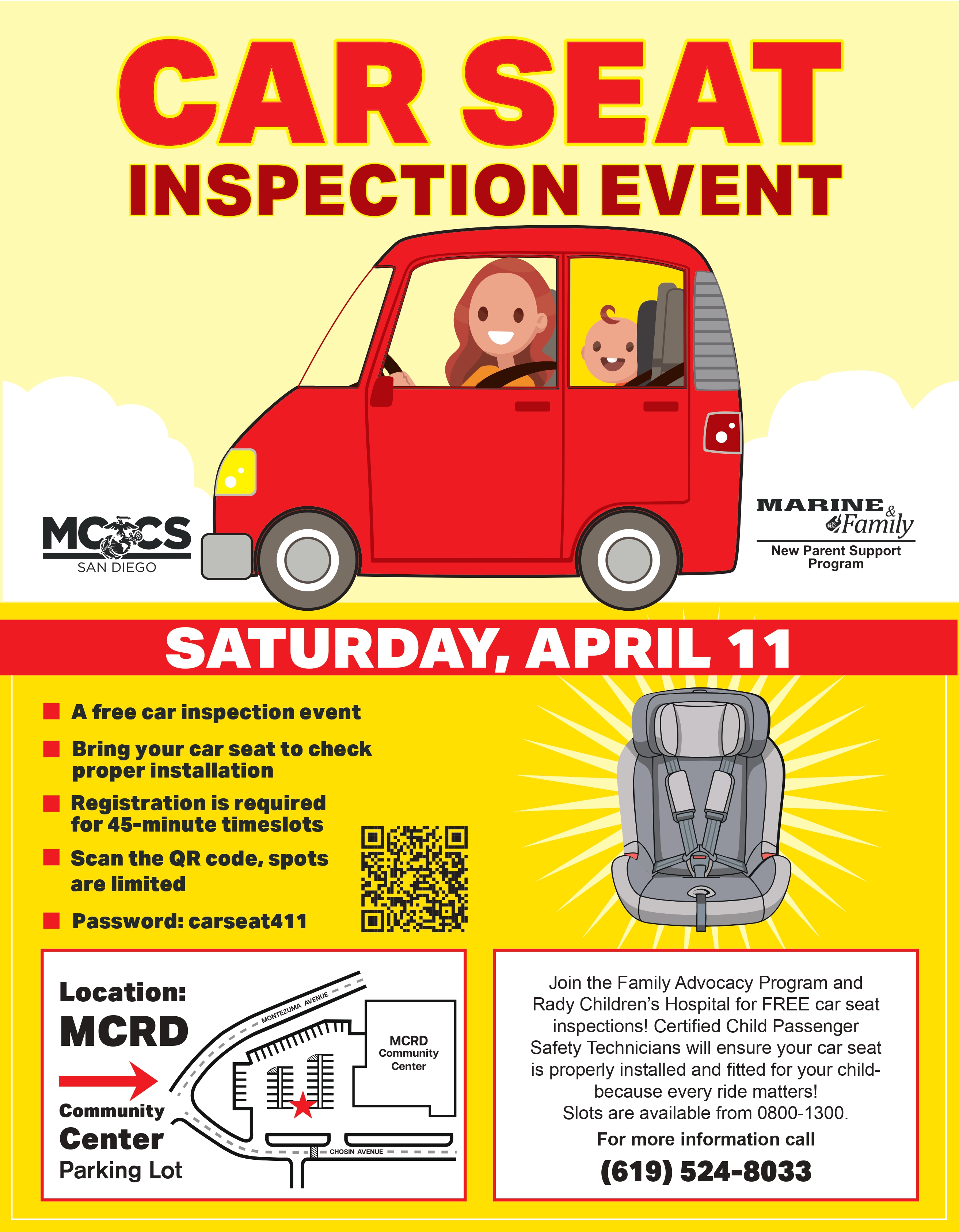Phone: 6195244446Join the Family Advocacy Program and Rady Children’s Hospital for FREE car seat inspections! Certified Child Passenger Safety Technicians will ensure your car seat is properly installed and fitted for your child